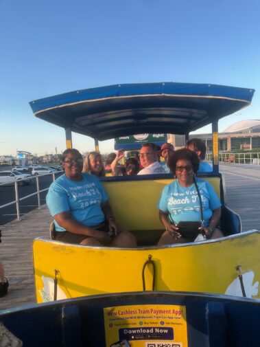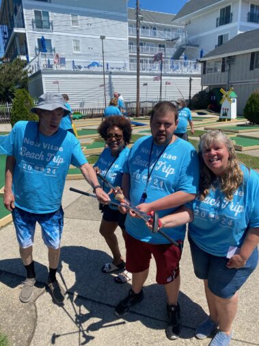 New Vitae Wellness and Recovery recently celebrated its 39th annual beach trip in 40 years, only missing 2020 due to COVID. This is a tradition many of our residents and support staff eagerly await every year. This year, we soaked up the sun and surf in beautiful Wildwood, NJ, with activities galore. We took trips into Cape May to catch Becoming Dr. Ruth at the Cape May Playhouse, and many enjoyed a delicious seafood lunch on the dock at the famous Lobster House. We visited the Cape May Zoo, had an amazing sunset dolphin watch boat ride, and had a pizza party at Sunset Beach where some staff and residents kayaked out to get a closer look at the “Sunken Ship.” They also spotted some dolphins! Others relaxed on the beach, did some souvenir shopping, and enjoyed walking along the beach collecting Cape May “Diamonds.” The water was chilly, but a few braved it and went swimming! The pool at The Brittany was warmer, and everyone had fun at the pool parties. The Wildwood Boardwalk thrilled us as always with Ferris wheel rides and the famous tramcar, surrey bike rides, and tasty treats like ice cream and fudge. We also had a blast crabbing, a fun mini golf tournament with prizes, and poolside cookouts, including steak and shrimp on the grill one night. Many enjoyed just soaking up the sun, rejuvenating, and relaxing with peers and staff in the beautiful setting.